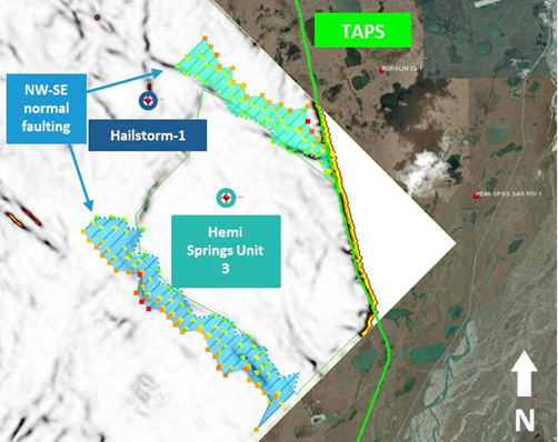 It is surrounded by oil fields, Orion, Polaris, West Sak and Milne Point, and contains the historical exploration well, Hemi Springs Unit 3, which was drilled by ARCO in 1985.